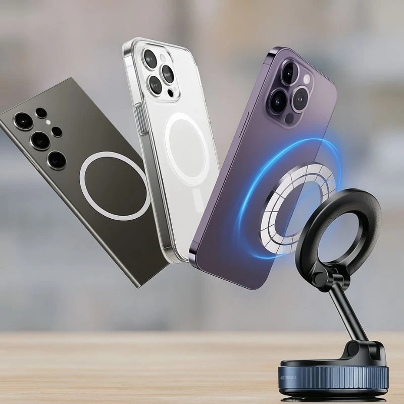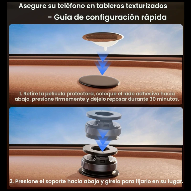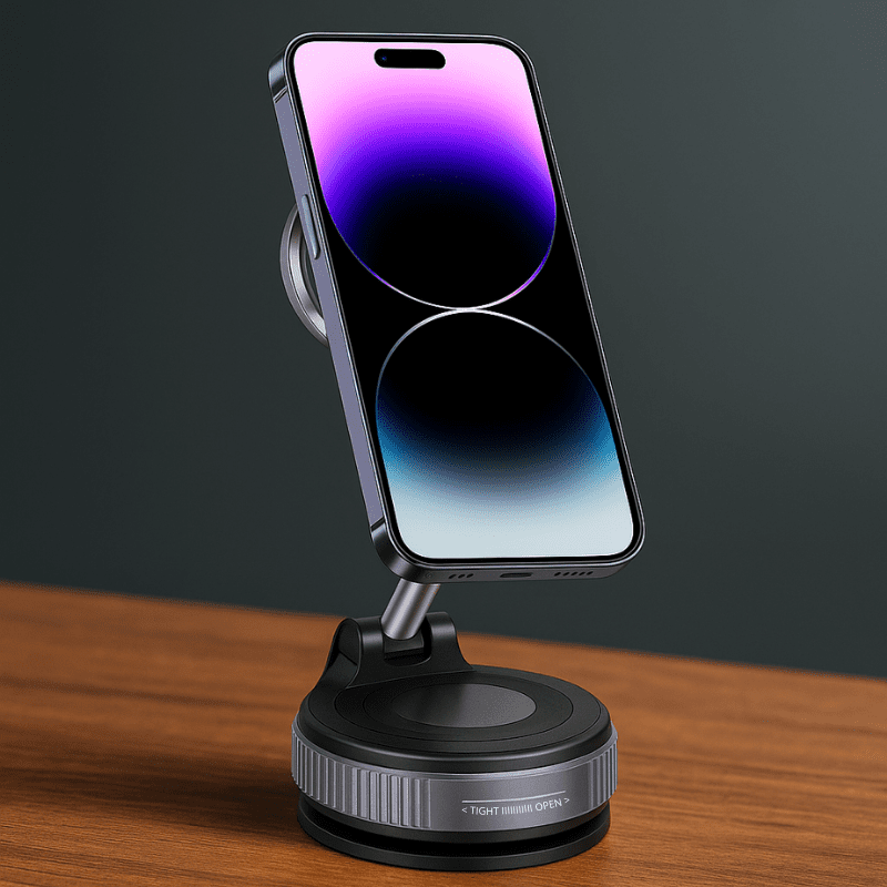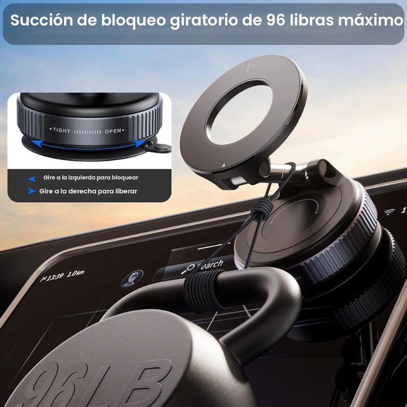Es un soporte con súper imán mejorado y ventosa de alta adherencia. Sujeta tu celular con firmeza en cualquier superficie lisa, sin que se mueva ni se caiga.